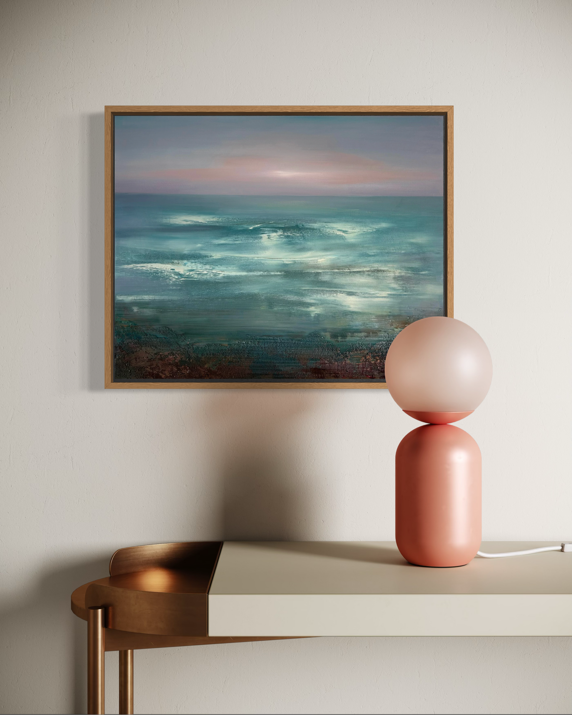 The word Caibhleadh depicts the faint voices of spirits that are heard in the distance over the sea on calm nights. Warm purple skies meet the soft horizon in mysterious harmony while gentle waves roll onto the shore in conversation.